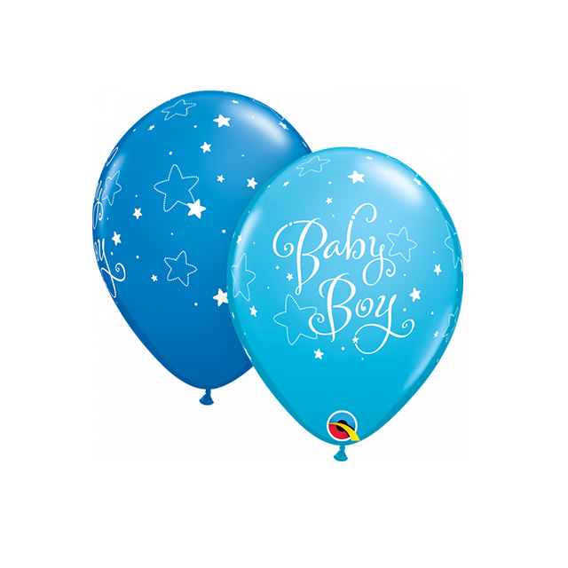 Baby Boy Stars Dark Blue&Robins Egg ( temno modra, nebeško modra) latex baloni z z belim potiskom Baby Boy premera 28 cm.