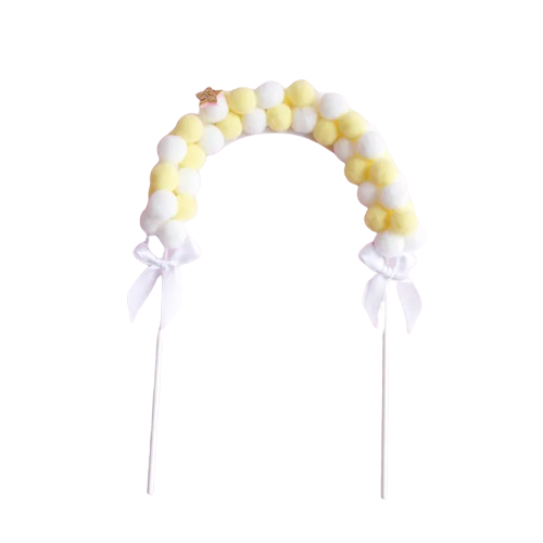 Mehka girlanda POM-POM za torto – Rumeno bela